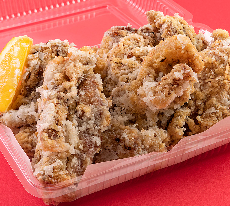 北東北の「あべどり」を使用した、やわらかくてジューシーな唐揚げです。1個がとっても大きく、食べごたえあり!冷めても美味しい!