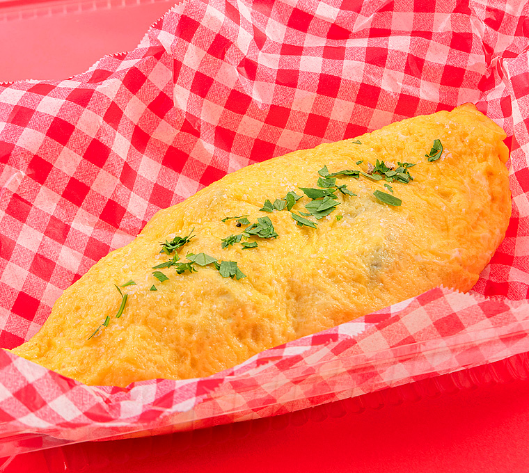 ふんわりオムレツの中にたっぷりのキノコ。トリュフの香りとともにお召し上がりください。